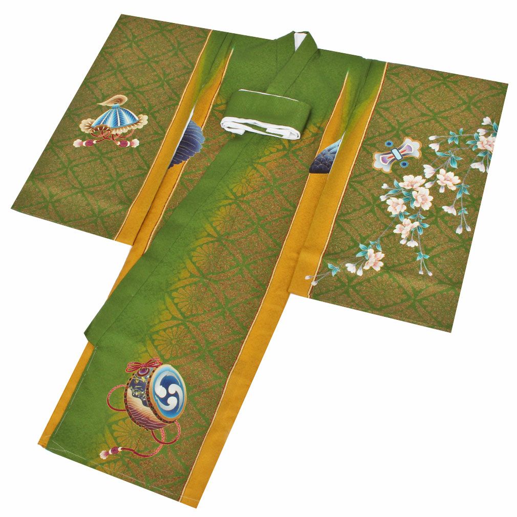 男の子用は勇ましさや出世、大成を意味する柄が描かれ、落ち着いた色を基調とした男の子らしい装いです。