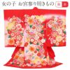 丸々大きく育つようにと願いが込められた鞠を始め、着物全体に桜や万寿菊・八重梅などが咲き誇る可愛らしく華やかなデザインです。