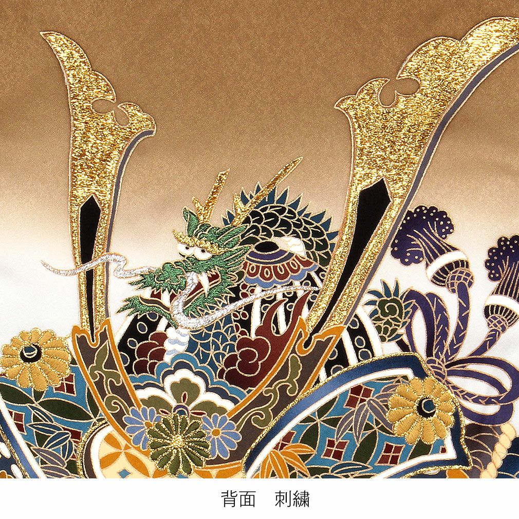 男の子用は勇ましさや出世、大成を意味する柄が描かれ、落ち着いた色を基調とした男の子らしい装いです。