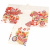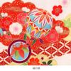 華やかな色使いの鞠や赤・金色の雲枠が着物全体を彩る、麗らかで女の子らしいデザインです。