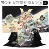男の子用は勇ましさや出世、大成を意味する柄が描かれ、落ち着いた色を基調とした男の子らしい装いです。