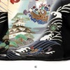 堂々と描かれた兜や宝船などの紋がお着物を豪華で勇ましく演出します。