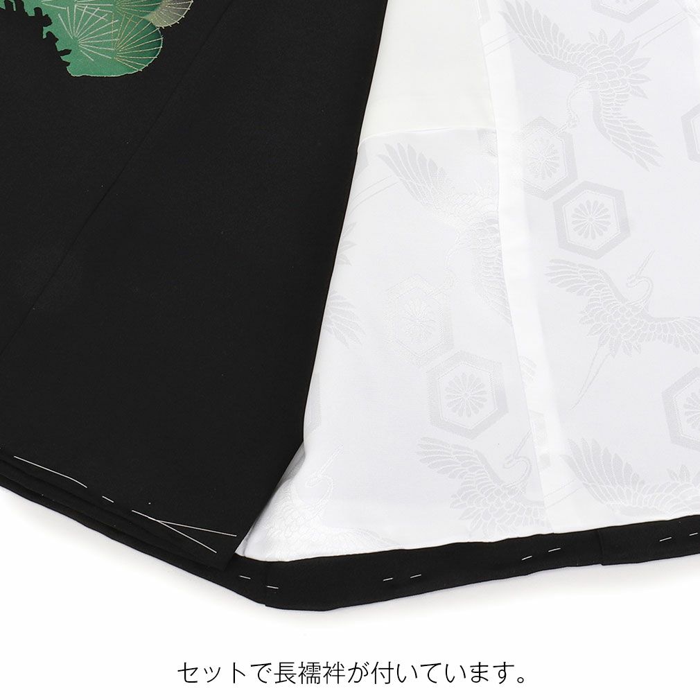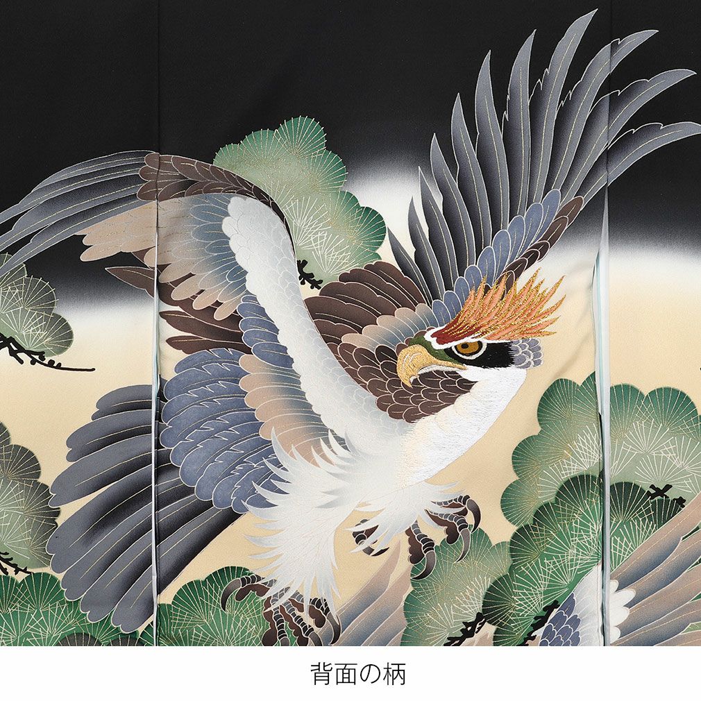 背中一面に羽ばたく親子鷹と松の葉ぼかしがお着物を豪華で勇ましく演出します。