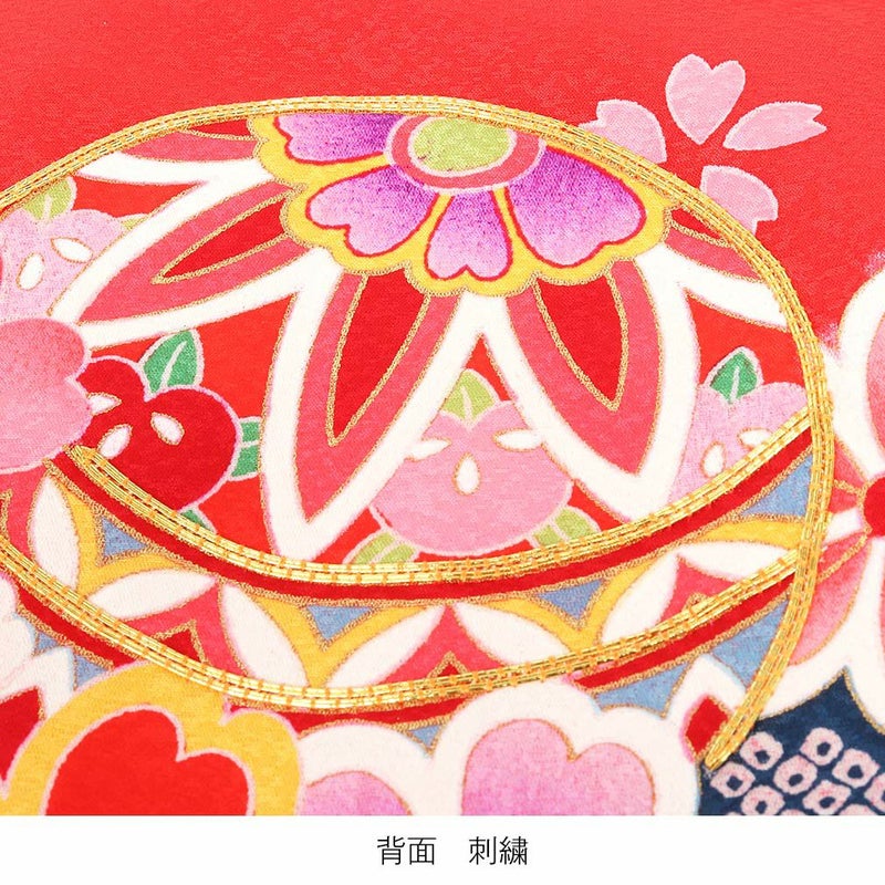 中央の鞠には金刺繍が、また花々には繊細な金彩の縁取りなど、豪華で美しいデザインが晴れの日を美しく彩ります。