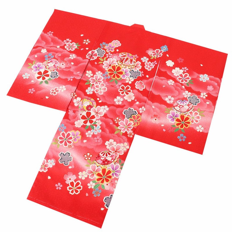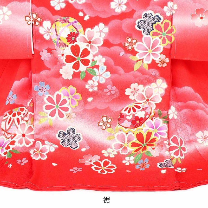 丸々大きく育つようにと願いが込められた鞠を始め、桜などの花々が咲き誇る、可愛らしく華やかなデザインです。