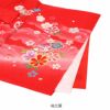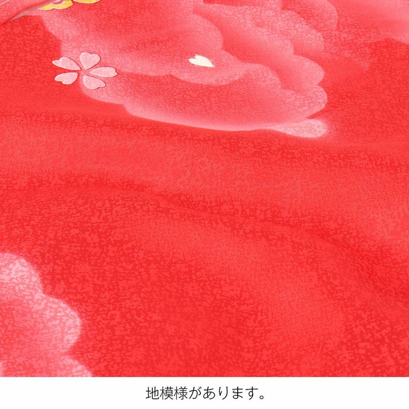 赤色の着物には地紋がはいり、光の加減で上品な地紋がふわりと美しく浮かび上がります。