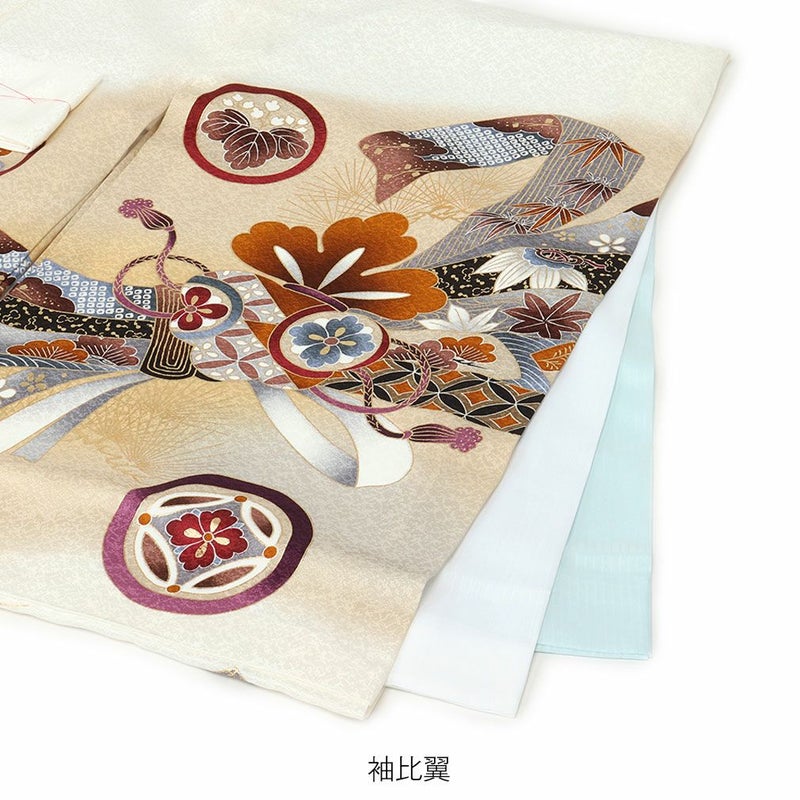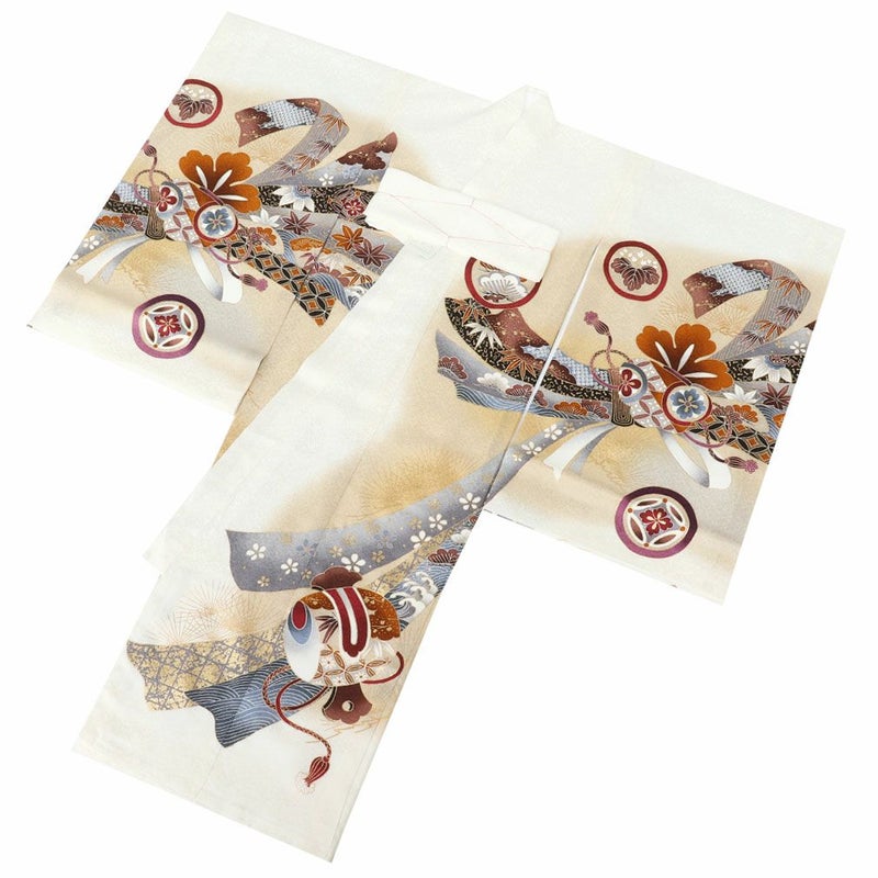 男の子用は勇ましさや出世、大成を意味する柄が描かれ、落ち着いた色を基調とした男の子らしい装いです。