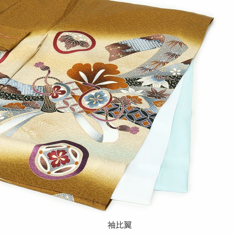 縁起物とされる宝尽くし文などが着物全体を勇ましく演出します。