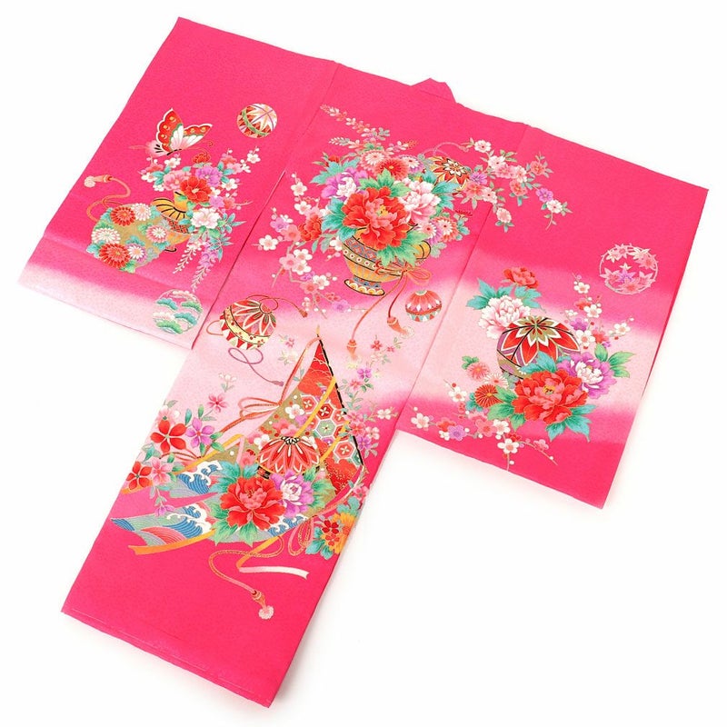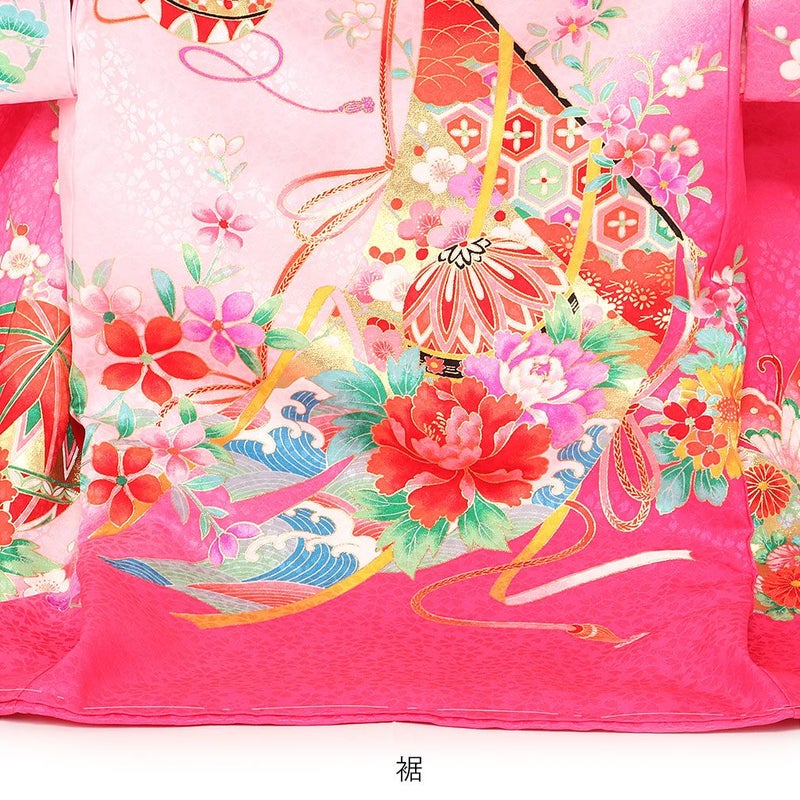 「立てば芍薬、座れば牡丹、歩く姿は百合の花」という言葉のように、奥ゆかしながらも強く美しく凛とした女性に育ってほしいという、親ごころが詰まった可愛らしく華やかな柄付きです。