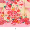 ピンク色から淡い黄色へのグラデーションが施された色彩豊かな地色の着物には桜の地紋が入り、光の加減で上品な模様がふわりと美しく浮かび上がります。