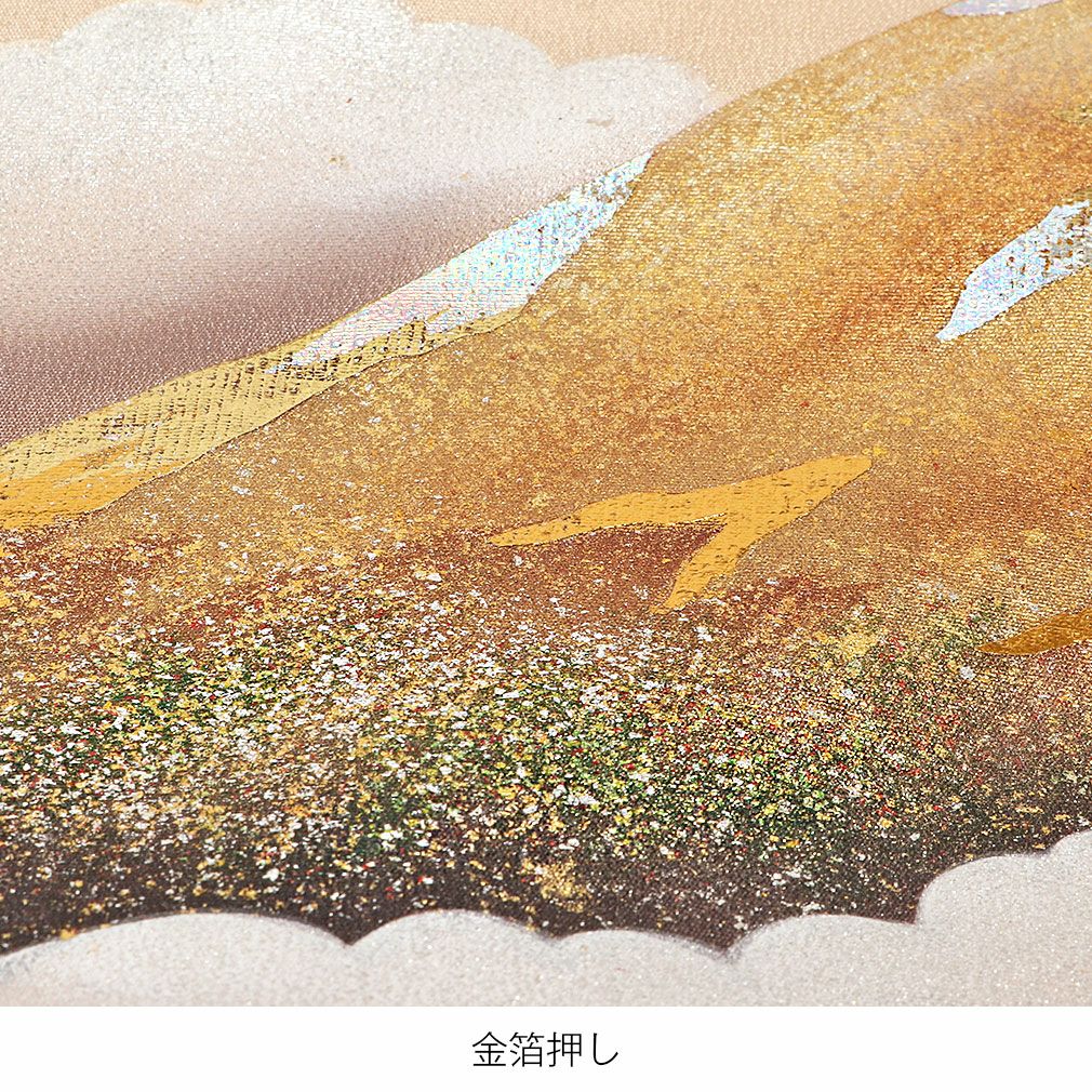 こちらの産着は、金銀箔をすべて熟練の職人による手作業にて施されており柄に立体感と躍動性が表現された絵画のように表情ある、美しい作品です。
