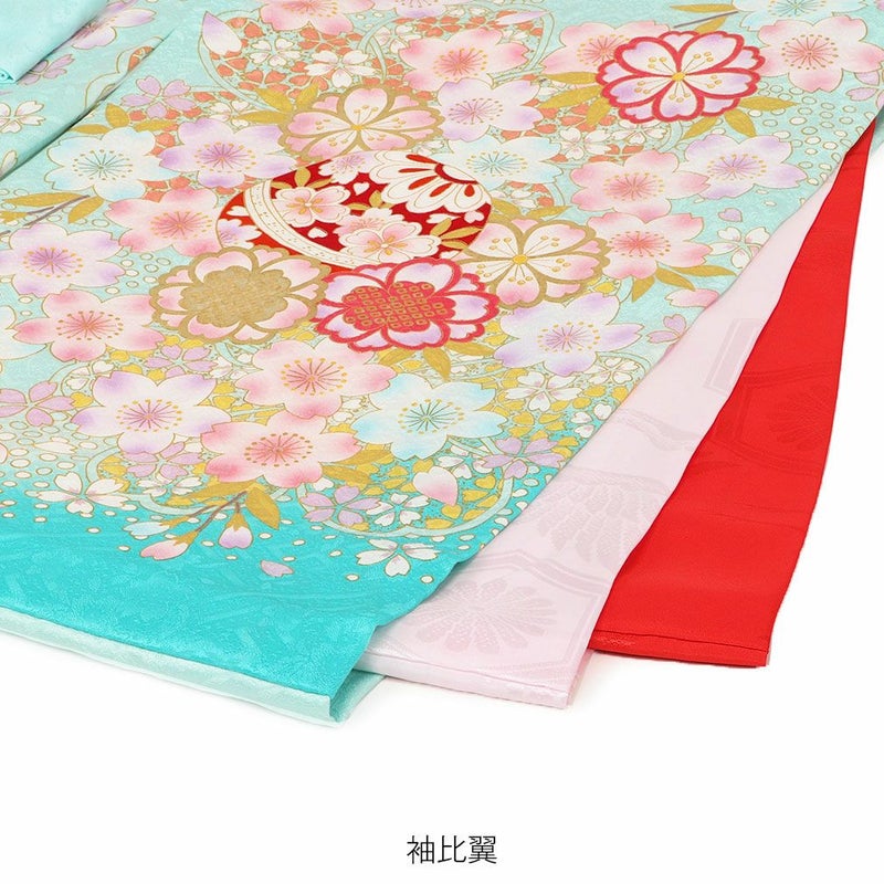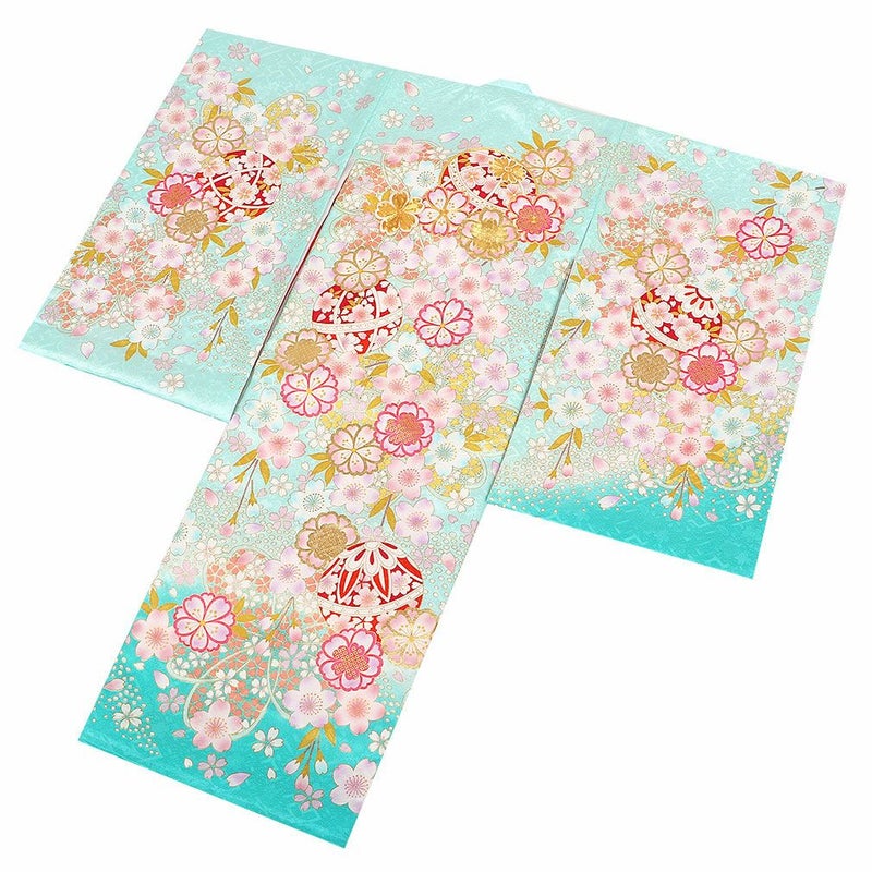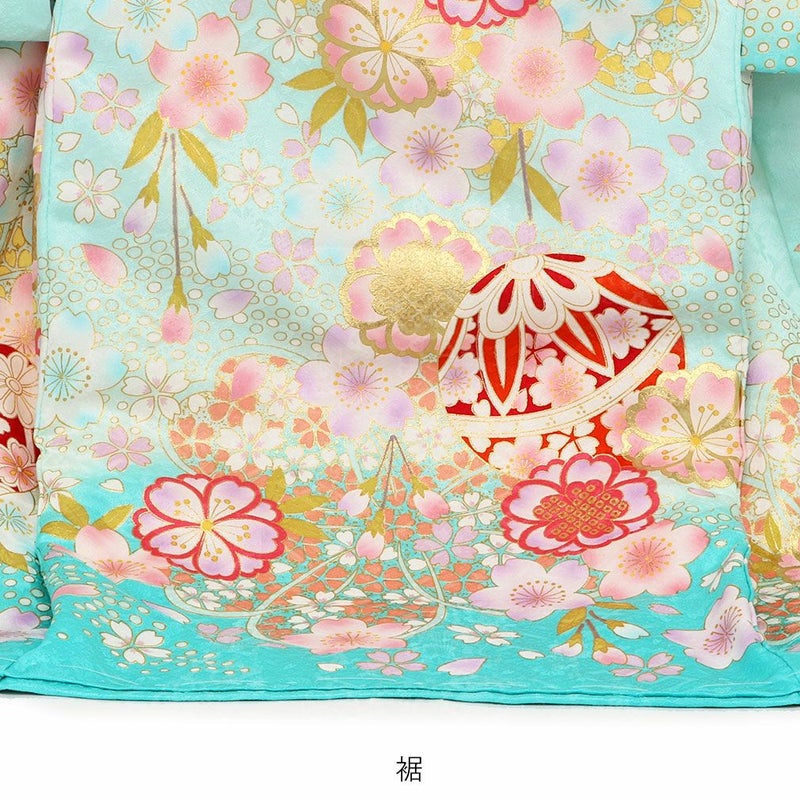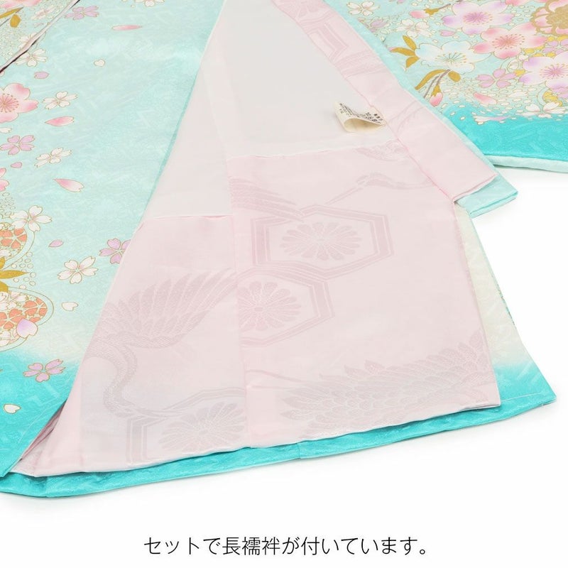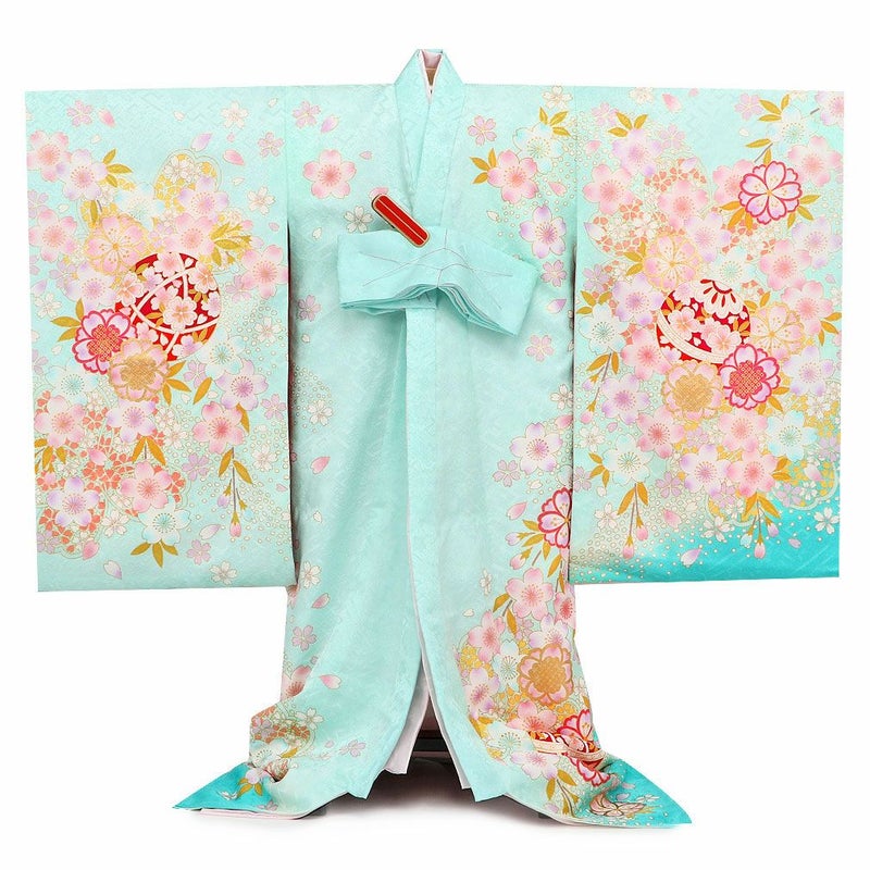 生地には高級感のある地模様が入り、光の加減でふわりと浮かび上がる文様がお着物全体を美しく引き立て、着物一面に描かれた桜の花々と共にハレの日を美しく彩ります。