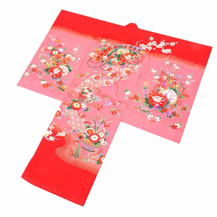 糸巻や几帳、花瓶や籠目などの吉祥文は福徳を呼ぶ吉祥文様とされ、お子様の活躍や成長の願う親心が込められています。