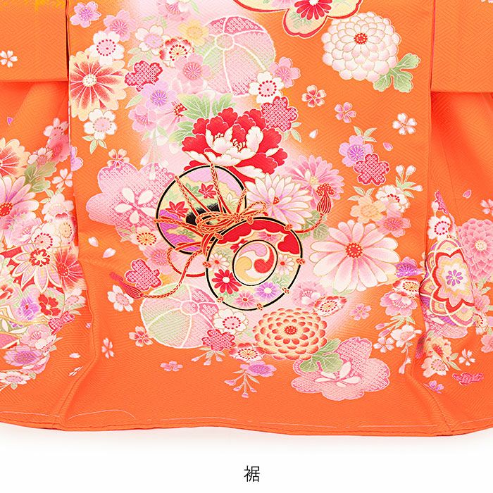 豪華な花車のおめでたい柄に花々が彩を添える、麗らかで女の子らしいデザインです。
