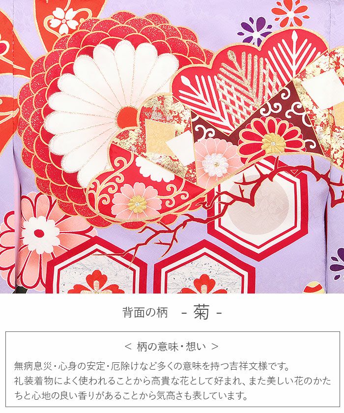 生地には高級感のある地模様が入り、光の加減でふわりと浮かび上がる文様がお着物全体を美しく引き立て、着物一面に描かれた花々と共にハレの日を美しく彩ります。