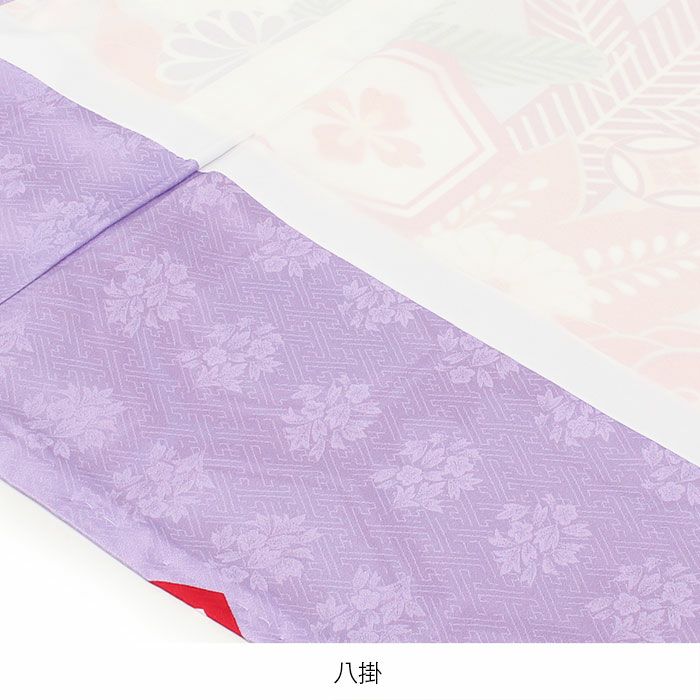 亀甲紋の周りには七宝や分銅などの宝尽くし紋が描かれ、お子様のお祝いに相応しいおめでたい柄ゆき。