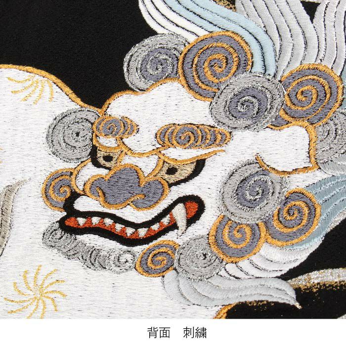 雲流の手描きならではの筆使いと繊細な刺繍の獅子が、一枚の絵画のような作品です。