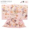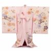 産まれて初めてのお祝い行事のお宮参り。 健やかな成長の願いなど、思いや願いがたくさんこめられた柄のお祝い着です。 ご家族の思いのこもったお着物にいかがですか。 クリーム色地に、優しい色使いで描かれた花車や花々が可愛く、上品な色合いの産着です。 八重桜や万寿菊に彩られた花車を始め、ねじ梅や桜などの吉祥花が咲き誇る、麗らかで女の子らしいデザイン。 縁起物とされる花車は、玉の輿に乗れますように等、女の子の美しい成長と祝福を願うおめでたい柄ゆきです。 他にも鈴や鹿の子紋は、福徳を呼ぶ吉祥紋とされお子様の活躍や成長の願う親心が込められています。 中央に描かれた八重桜の縁取りには金糸刺繍が施され、ふっくらとした厚みや輝きがあり、繊細な輝きがお楽しみいただけます。 淡い色合いの着物には金彩が浮かび上がり、着物一面に描かれた花々と共にハレの日を美しく彩ります。 職人の手作業により一つ一つ丁寧に染め上げられた手の込んだ熟練の技が光る逸品。 お着物の上着は、表地は絹100%で仕立てておりますので、正絹ならではの柔らかな光沢と滑らかな肌触りが感じられます。 生まれたての赤ちゃんにも安心の日本製です。 着物と長襦袢の前身ごろには紐が縫い付けてありますため、仕付け糸を解いて頂ければすぐにご使用いただけます。 ご姉妹での着用や、七五三にもお使いいただけます。 贈り物や保管の際に便利な化粧箱も別途販売しております。 生まれて初めてのお着物にお勧めの逸品、ぜひ手に取ってお楽しみくださいませ。