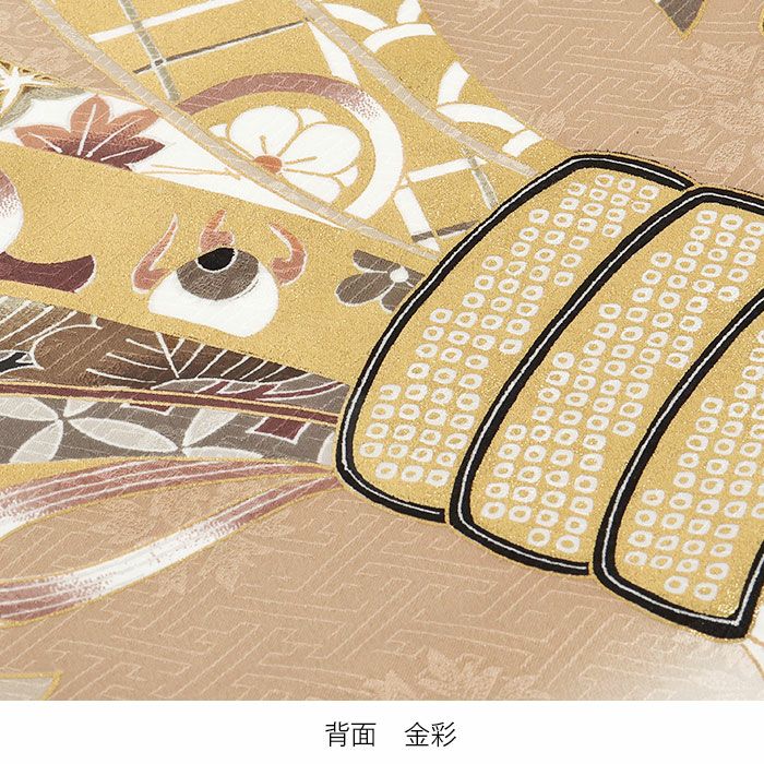 掴んだ幸運を離さないとされる鷹や、小槌などの宝尽くし紋が描かれた束ね熨斗、長寿とされる松などのおめでたい柄ゆきには、お子様の活躍や成長の願いが込められております。