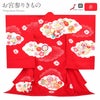 健やかな成長の願いなど、思いや願いがたくさんこめられた柄のお祝い着です。 ご家族の思いのこもったお着物にいかがですか。 本絞りの雲取りに毬や牡丹、小槌などの宝尽くし紋や菊などの吉祥花が咲き誇る、晴れの日にふさわしい華やかな柄ゆき。 縁起物とされる宝尽くし紋などの描かれた柄の一つ一つに、お子様の活躍や成長の願いが込められております。 背に描かれた鞠やねじ梅の縁取りには盛金が施され、ふっくらとした厚みのある繊細な輝きが産着の豪華さをいっそう際立たせています。 さらに、柄の縁にあしらわれた金彩が、ひとつひとつの文様を浮かび上がるように美しく演出します。 伸子張りをした布地に下絵を描き、糸目糊で職人が一筆一筆、丹念に彩色した、手描き友禅ならではの奥深い味わいが感じられる逸品。 中でも高級とされる鹿の子絞りは、手絞りならではの凹凸ややわらかなぼかしが美しく表れます。 やさしい色彩で描かれた文様が上品な華やぎを添え、着物全体をいっそう美しく際立たせます。 生地には地模様が入り、光の加減で上品な模様がふわりと美しく浮かび上がります。 産着の表地は絹100%で仕立てておりますので、正絹ならではの柔らかな光沢と滑らかな肌触りが感じられます。 生まれたての赤ちゃんにも安心の日本製です。 着物と長襦袢の前身ごろには紐が縫い付けてありますため、仕付け糸を解いて頂ければすぐにご使用いただけます。 ご姉妹での着用や、七五三にもお使いいただけます。 贈り物や保管の際に便利な化粧箱も別途販売しております。 細部に至るまで見事な熟練の手技により丁寧に作られた産着は、どなたがご覧になっても分かる程に格調高いお品です。 生まれて初めてのお着物にお勧めの逸品、ぜひ手に取ってお楽しみくださいませ。
