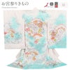 産まれて初めてのお祝い行事のお宮参り。 健やかな成長の願いなど、思いや願いがたくさんこめられた柄のお祝い着です。 ご家族の思いのこもったお着物にいかがですか。 華やかに咲き誇る牡丹を中心に、鞠や花扇、桜などの吉祥文様が描かれた、華やかで女の子らしいデザイン。 牡丹は「富貴」や「繁栄」を象徴する縁起の良い花とされ、鞠にあしらわれた亀甲紋や全体に描かれた桜紋など、柄の一つ一つにお子様の活躍や健やかな成長への願いが込められております。 牡丹にはラメ糸刺繍が施され、ふっくらとした厚みや輝きがあり、繊細な輝きがお楽しみいただけます。 さらに、牡丹の花びらには繊細なラインストーンをあしらい、さりげない華やかさを添えています。 柄の縁取りには銀彩が美しく煌めき、お子様の初めての節目を華やかに彩ります。 白地にふんわりとかかる水色のぼかしが写真にも美しく映え、大切な記念日を彩る特別な装いに仕上げました。 生地には地模様が入り、光の加減で上品な模様がふわりと美しく浮かび上がります。 産着の表地は絹100%で仕立てておりますので、正絹ならではの柔らかな光沢と滑らかな肌触りが感じられます。 生まれたての赤ちゃんにも安心の日本製です。 この産着は「経済産業省製造産業局長賞」にも認定される京友禅です。 また、指定された要件を満たした工芸品にのみ認定される「経済産業大臣指定伝統的工芸品」の証紙が付いております。 着物と長襦袢の前身ごろには紐が縫い付けてありますため、仕付け糸を解いて頂ければすぐにご使用いただけます。 ご姉妹での着用や、七五三にもお使いいただけます。 贈り物や保管の際に便利な化粧箱も別途販売しております。 細部に至るまで見事な熟練の手技により丁寧に作られた産着は、どなたがご覧になっても分かる程に格調高いお品です。 生まれて初めてのお着物にお勧めの逸品、ぜひ手に取ってお楽しみくださいませ。