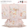 産まれて初めてのお祝い行事のお宮参り。 健やかな成長の願いなど、思いや願いがたくさんこめられた柄のお祝い着です。 ご家族の思いのこもったお着物にいかがですか。 華やかに咲き誇る牡丹を中心に、鞠や花扇、桜などの吉祥文様が描かれた、華やかで女の子らしいデザイン。 牡丹は「富貴」や「繁栄」を象徴する縁起の良い花とされ、鞠にあしらわれた亀甲紋や全体に描かれた桜紋など、柄の一つ一つにお子様の活躍や健やかな成長への願いが込められております。 牡丹にはラメ糸刺繍が施され、ふっくらとした厚みや輝きがあり、繊細な輝きがお楽しみいただけます。 さらに、牡丹の花びらには繊細なラインストーンをあしらい、さりげない華やかさを添えています。 柄の縁取りには銀彩が美しく煌めき、お子様の初めての節目を華やかに彩ります。 ほんのりピンクかかった地色に淡い色使いで描かれた柄ゆきが美しく映え、大切な記念日を彩る特別な装いに仕上げました。 生地には地模様が入り、光の加減で上品な模様がふわりと美しく浮かび上がります。 産着の表地は絹100%で仕立てておりますので、正絹ならではの柔らかな光沢と滑らかな肌触りが感じられます。 生まれたての赤ちゃんにも安心の日本製です。 この産着は「経済産業省製造産業局長賞」にも認定される京友禅です。 また、指定された要件を満たした工芸品にのみ認定される「経済産業大臣指定伝統的工芸品」の証紙が付いております。 着物と長襦袢の前身ごろには紐が縫い付けてありますため、仕付け糸を解いて頂ければすぐにご使用いただけます。 ご姉妹での着用や、七五三にもお使いいただけます。 贈り物や保管の際に便利な化粧箱も別途販売しております。 細部に至るまで見事な熟練の手技により丁寧に作られた産着は、どなたがご覧になっても分かる程に格調高いお品です。 生まれて初めてのお着物にお勧めの逸品、ぜひ手に取ってお楽しみくださいませ。