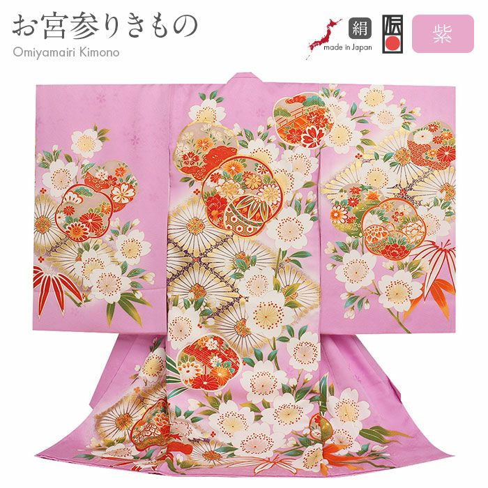 他の画像を見る 祝い着にふさわしい美しい正絹友禅 お宮参り 着物 女の子 産着 祝い着 桃紫 桃 橙 薄紫 鞠 牡丹 御所車 松竹梅 貝桶 吉祥花 正絹 友禅 済産業大臣指定伝統的工芸品 金駒刺繍 金銀彩 箔使い 当店特別価格 ¥ 115,500 税込 カートに入れる お気に入りに登録する