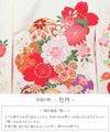 中央の鞠にはラメ糸による刺繍が、また花々には繊細な金彩の縁取りなど、豪華で美しいデザインが晴れの日を美しく彩ります。