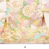 牡丹の縁取りや万寿菊の花びらには職人による丁寧な金駒刺繍が施され、浮かび上がる様などうっとりする程きれいなお着物です。