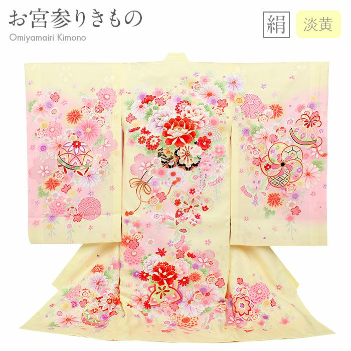他の画像を見る お宮参り 女の子 着物 産着 服装 赤ちゃん 祝い着 お宮参り 着物 女の子 産着 祝い着 淡黄 花車 牡丹 鈴 御所車 桜 万寿菊 正絹 のしめ 掛け着 初着 鞠 毬 SALE 定価 ¥ 40,700 のところ 当店特別価格 ¥ 36,630 税込 (0) カートに入れる お気に入りに登録する