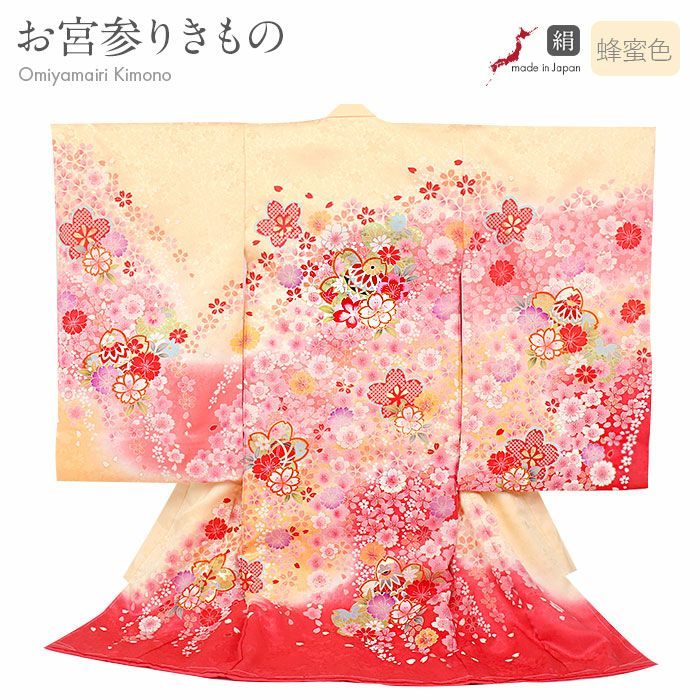 他の画像を見る ≪在庫限り≫ 女の子 赤ちゃんのお宮参りの着物 産着 お宮参り 着物 女の子 産着 祝い着 蜂蜜色 淡黄 桃 桜尽くし 鞠 正絹 友禅 刺繍 金彩 日本製 新品 当店特別価格 ¥ 81,400 税込 (0) カートに入れる お気に入りに登録する