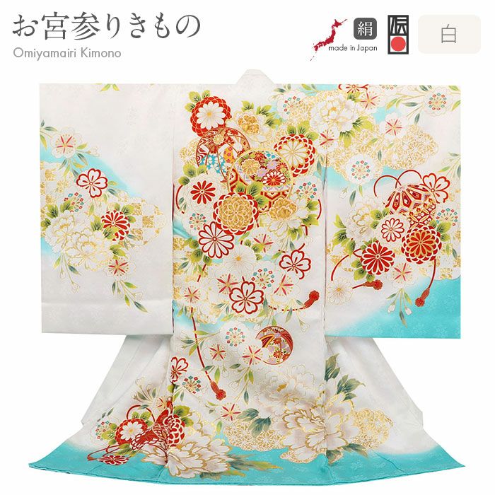 他の画像を見る お子様の初めての祝い着 お宮参り 着物 女の子 産着 祝い着 白 水色 毬 鞠 まり 牡丹 熨斗 桜 菊 吉祥紋 金駒刺繍 京友禅 正絹 祝い着 当店特別価格 ¥ 115,500 税込 (0) カートに入れる お気に入りに登録する
