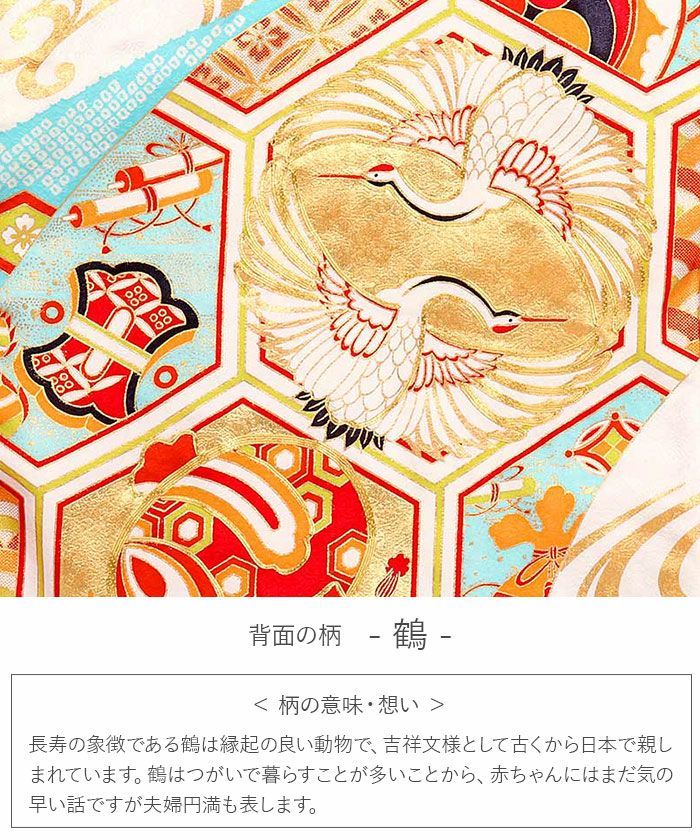 他の画像を見る お宮参り 女の子 着物 産着 服装 赤ちゃん 祝い着 お宮参り 着物 女の子 産着 祝い着 白 水色 金 対い鶴 宝尽くし 亀甲 松 正絹 京友禅 のしめ 掛け着 初着 日本製 当店特別価格 ¥ 132,000 税込 (0) お気に入りに登録する
