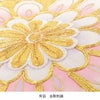 万寿菊や桜の縁取りや牡丹の花びらには、職人による丁寧な金駒刺繍が施されふっくらとした質感や、煌びやかな輝きが映える豪華な意匠。
