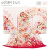 産まれて初めてのお祝い行事のお宮参り。 健やかな成長の願いなど、思いや願いがたくさんこめられた柄のお祝い着です。 ご家族の思いのこもったお着物にいかがですか。 愛らしい鼓に桜などの吉祥花が咲き誇る、麗らかで女の子らしいデザイン。 鼓に花が描かれた「花鼓文」には、教養の象徴で、技芸の上達を願う柄とされています。 「物事が良く成る」「見事な実がなる」という意味にかけて豊作や成功を表す意味もあります。 花鼓をはじめ、描かれた柄の一つ一つにお子様の活躍や成長の願いが込められております。 鼓や八重桜の縁取りには職人による丁寧な金糸刺繍が施され、煌びやかな輝きが映える豪華な意匠。 柄の縁取りには金彩が煌めき、お子様の初めての節目を華やかに彩ります。 表地は絹100%で仕立てておりますので、正絹ならではの柔らかな光沢と滑らかな肌触りが感じられます。 着物と長襦袢の前身ごろには紐が縫い付けてありますため、仕付け糸を解いて頂ければすぐにご使用いただけます。 ご姉妹での着用や、七五三にもお使いいただけます。 桜は春の花でもあるので、生まれた季節で選んでみる楽しみも。 贈り物や保管の際に便利な化粧箱も別途販売しております。 生まれて初めてのお着物にお勧めの逸品、ぜひ手に取ってお楽しみくださいませ。