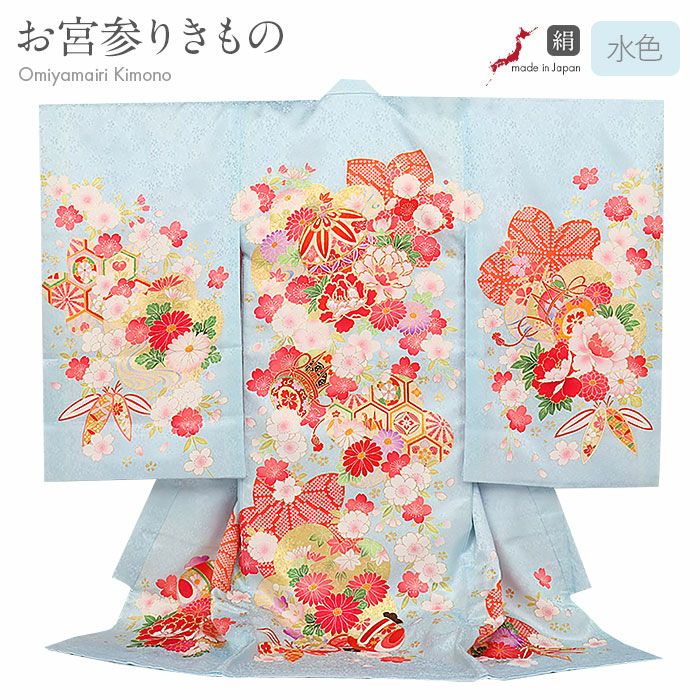 他の画像を見る お子様の初めての祝い着 お宮参り 着物 女の子 産着 祝い着 水色 花車 御所車 毬 鞠 まり 花紋 正絹 金刺繍 祝い着 当店特別価格 ¥ 40,700 税込 (0) カートに入れる お気に入りに登録する