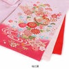 淡いパープル色からコーラルオレンジ、濃ピンク色とぼかし染めが施されており、柄を引き立てる華やかな印象に。