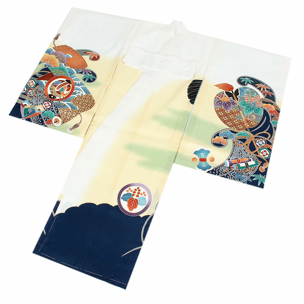 他の画像を見る 祝い着にふさわしい美しい正絹友禅 お宮参り 着物 男の子 産着 祝い着 白 ホワイト ネイビー 下向かい鶴菱 亀甲 七宝 露芝 梅 ぼかし 正絹 友禅 金駒刺繍 金彩 日本製 当店特別価格 ¥ 77,000 税込 お気に入りに登録する