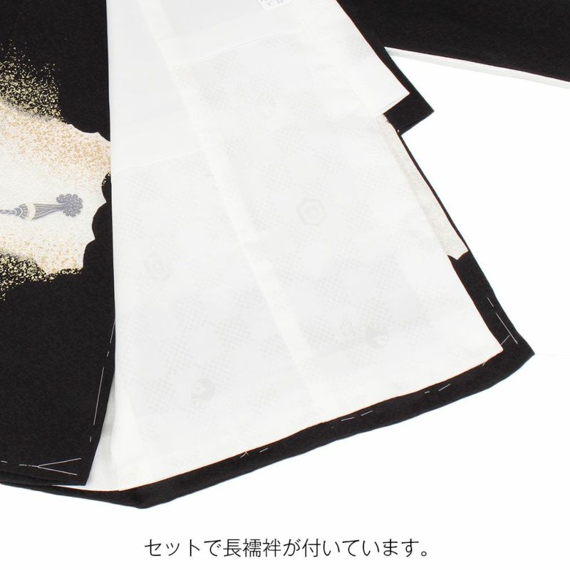 黒地に金散らしの入った煌びやかな生地には高級感のある地模様が入り、光の加減でふわりと浮かび上がる文様がお着物全体を美しく引き立てます。
