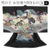 男の子用は勇ましさや出世、大成を意味する柄が描かれ、濃紺や緑、金などを基調とした男の子らしい装いです。