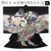 男の子用は勇ましさや出世、大成を意味する柄が描かれ、濃紺や緑、金などを基調とした男の子らしい装いです。