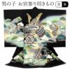 男の子用は勇ましさや出世、大成を意味する柄が描かれ、落ち着いた色を基調とした男の子らしい装いです。