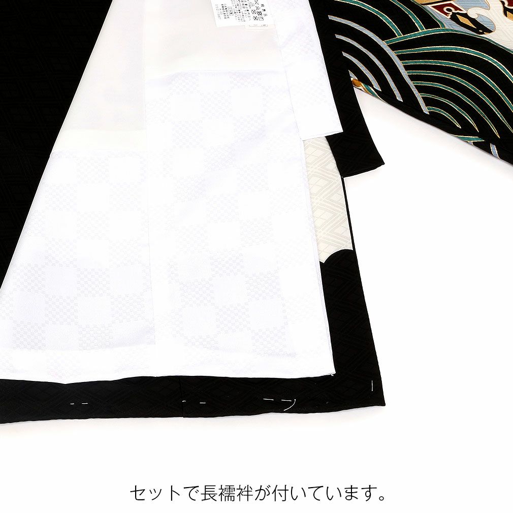 男の子用は勇ましさや出世、大成を意味する柄が描かれ、落ち着いた色を基調とした男の子らしい装いです。