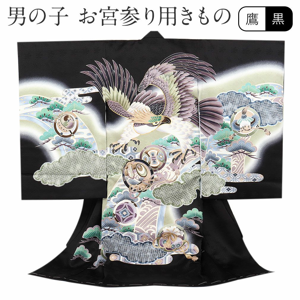 堂々と描かれた鷹を始め、鹿の子雲や宝紋様などを散らした荘厳で存在感あふれるデザイン。
