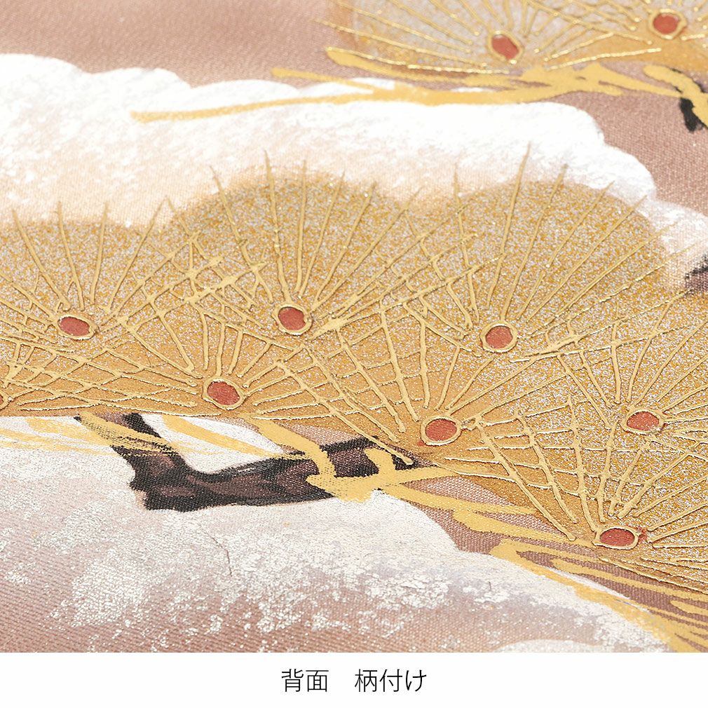 金彩で描かれた松の葉には、細やかなラメが施され、浮き出るような見た目の豪華さが楽しめます。