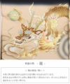 青龍は、四神獣の中でも最も貴い存在と考えられ、悪霊を追い払いさまざまな福徳を授けてくれるとされる吉祥柄。