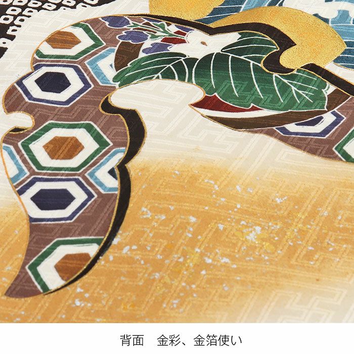 柄の縁取りには金彩が煌めき、立体感と気品ある輝きが晴れやかな装いを一層引き立てます。