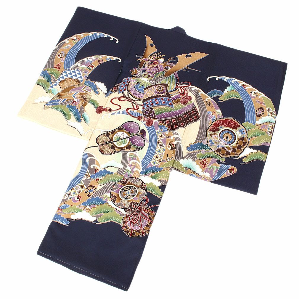 他の画像を見る ≪在庫限り≫ 男の子 赤ちゃんのお宮参りの着物 お宮参り 着物 男の子 絹 正絹 掛け着 産着 紺 青 兜 熨斗 扇 馬具 吉祥文 友禅 刺繍 金彩 新品 販売 購入 きもの 祝い着 当店特別価格 ¥ 38,500 税込 (0) カートに入れる お気に入りに登録する