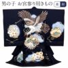 男の子用は勇ましさや出世、大成を意味する柄が描かれ、落ち着いた色を基調とした男の子らしい装いです。