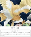 濃紺地に金彩で描かれた松や宝尽くし紋などが煌びやかに輝き、鷹の凛々しさを引き立てています。